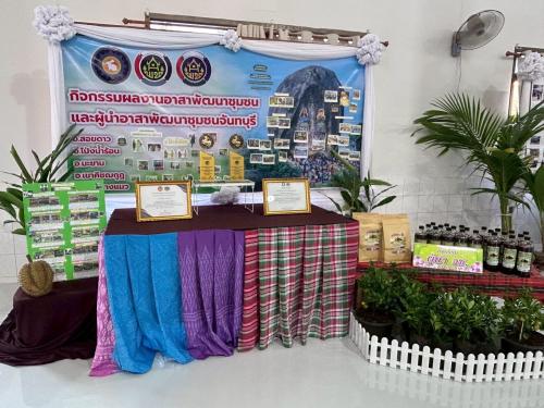 • ด้านศาสนาและนิทรรศการ: พิธีทำบุญถวายภัตตาหารเพลแด่พระสงฆ์ และการจัดแสดงนิทรรศการผลการปฏิบัติงานที่เป็นรูปธรรมของผู้นำ อช. จังหวัดจันทบุรี