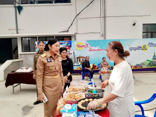 นางจารุณี กาวิล รองผู้ว่าราชการจังหวัดจันทบุรี พร้อมด้วยนางสาวกาญจนา ทองเกษม พัฒนาการจังหวัดจันทบุรี และนางชิดชญา จำปาเทศ ผู้อำนวยการกลุ่มงานส่งเสริมการพัฒนาชุมชน ได้เยี่ยมชมและพบปะให้กำลังใจ กลุ่มผู้ผลิต ผู้ประกอบการที่มาออกร้านจำหน่ายสินค้าตามโครงการ "ตลาดนัดคนไทยยิ้มได้" โดยดำเนินการทุกวันประชุมคณะกรมการจังหวัดและหัวหน้าส่วนราชการฯ โดยมีวัตถุประสงค์เพื่อเพิ่มช่องทางการตลาด สร้างการเรียนรู้ สร้างรายได้ และประชาสัมพันธ์ผลิตภัณฑ์ให้เป็นที่รู้จักและมีรายได้เพิ่มมากขึ้น