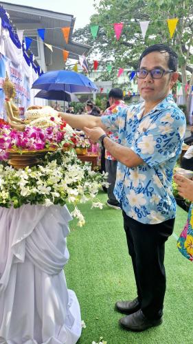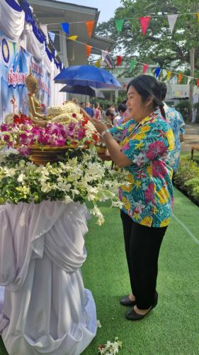 ในโอกาสอันดีนี้ พระราชธรรมเมธี และพระครูโกศลเมธีวัฒน์ ได้เมตตาประทานพรแก่ผู้เข้าร่วมพิธีทุกคนให้ประสบแต่ความสุขความเจริญในวาระขึ้นปีใหม่ไทย พร้อมทั้งฝากข้อคิดหลักธรรมสำคัญในการดำเนินชีวิต 2 ประการ ได้แก่ หลัก "ความพอเพียง" โดยสอนให้รู้จักยินดีและพอใจในสิ่งที่ตนมี ไม่หลงระเริงหรืออยากได้ในสิ่งของของผู้อื่น หรือสิ่งที่ตนยังไม่มี ซึ่งการรู้จักพอนี้จะนำมาซึ่งความสุขใจที่แท้จริงในการดำรงชีวิต นอกจากนี้ยังได้เน้นย้ำถึงหลัก "การมีสติ" โดยเตือนสติไม่ให้ตั้งอยู่บนความประมาท ควรมีความระลึกรู้ ไตร่ตรอง และยับยั้งชั่งใจอย่างรอบคอบก่อนการตัดสินใจหรือกระทำการใด ๆ เพื่อให้สามารถดำเนินชีวิตก้าวผ่านอุปสรรคและปัญหาต่าง ๆ ไปได้อย่างราบรื่นและมั่นคง