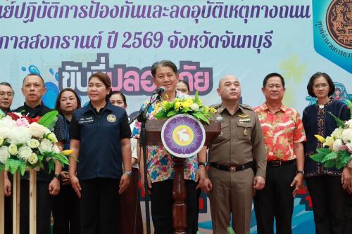 นายมนต์สิทธิ์ ไพศาลธนวัฒน์ ผู้ว่าราชการจังหวัดจันทบุรี เป็นประธานเปิดศูนย์ปฏิบัติการป้องกันและลดอุบัติเหตุทางถนนช่วงเทศกาลสงกรานต์ พ.ศ. 2569 โดยมีรองผู้ว่าราชการจังหวัด พร้อมด้วยตัวแทนจากหน่วยงานภาครัฐ ภาคเอกชน ภาคีเครือข่าย และนางสาวกาญจนา ทองเกษม พัฒนาการจังหวัดจันทบุรี ได้เข้าร่วมกิจกรรม เพื่อประชาสัมพันธ์การเตรียมความพร้อมของทุกภาคส่วน และรณรงค์สร้างจิตสำนึกด้านความปลอดภัยในการใช้รถใช้ถนนให้แก่ประชาชน โดยจะมีการเฝ้าระวังอย่างเข้มข้นในช่วง 7 วันระวังอันตราย ระหว่างวันที่ 10-16 เมษายน 2569 โอกาสนี้ ภาคีเครือข่ายยังได้ร่วมกันสนับสนุนอาหาร เครื่องดื่ม และหมวกนิรภัย เพื่อนำไปกระจายสู่ด่านระดับชุมชน 60 แห่ง และด่านบังคับใช้กฎหมายอีก 17 แห่งทั่วจังหวัด